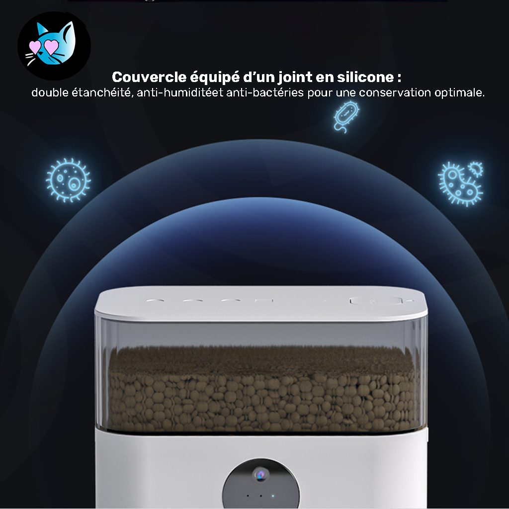 Son réservoir de 5L assure jusqu’à un mois d’autonomie pour un chat adulte. Facile à nettoyer, chaque partie est amovible. L’étanchéité est pensée pour préserver la fraîcheur des aliments, avec un couvercle hermétique et un joint silicone anti-humidité.